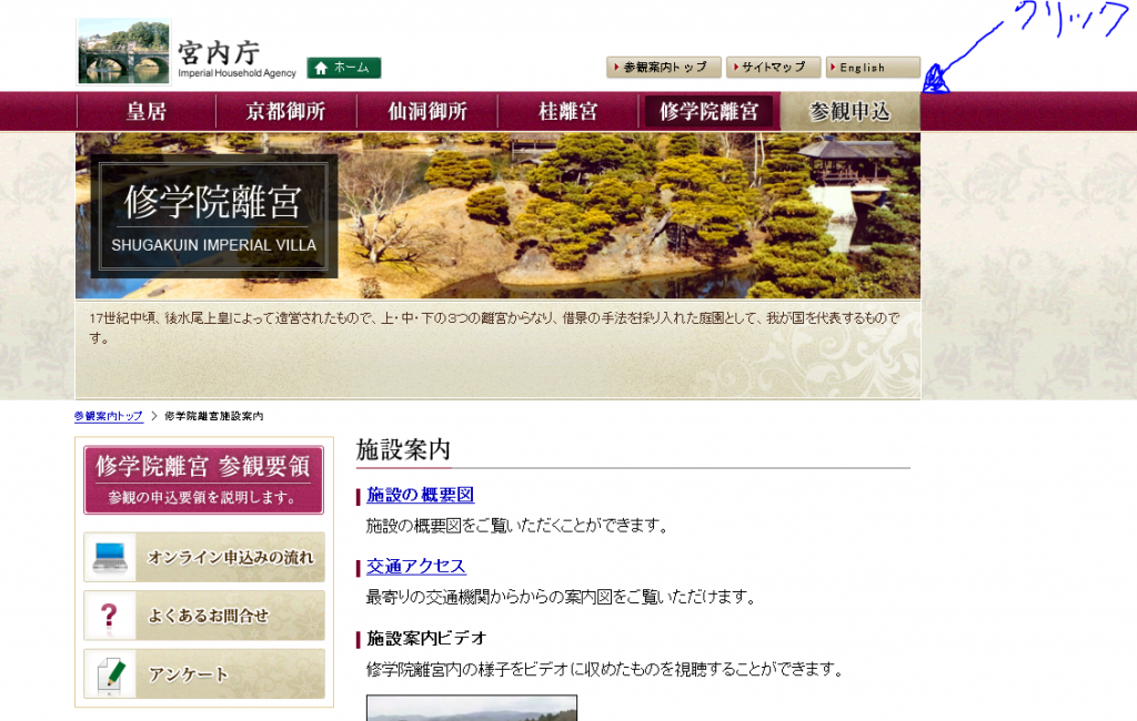 修学院離宮の予約申込み方法見学は一日何回ですか美しい季節は
